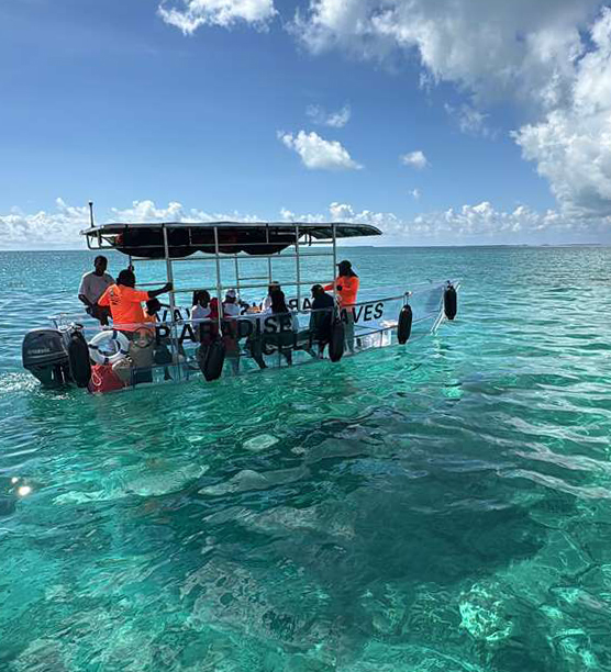 Experience the Turks & Caicos Islands from a whole new perspective aboard a custom transparent boat that glides over the vibrant Grand Turk reefs, revealing colorful coral, tropical fish, and graceful rays beneath your feet.